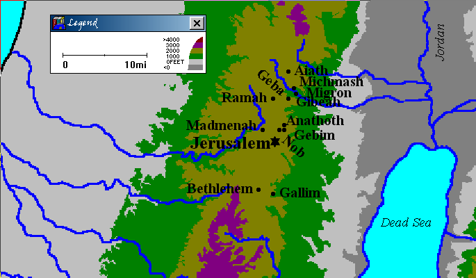 Apparently as close as the Assyrians would come. Could this also be a picture of the end times, with the armies of the world surrounding Jerusalem? (Zech 14:2)